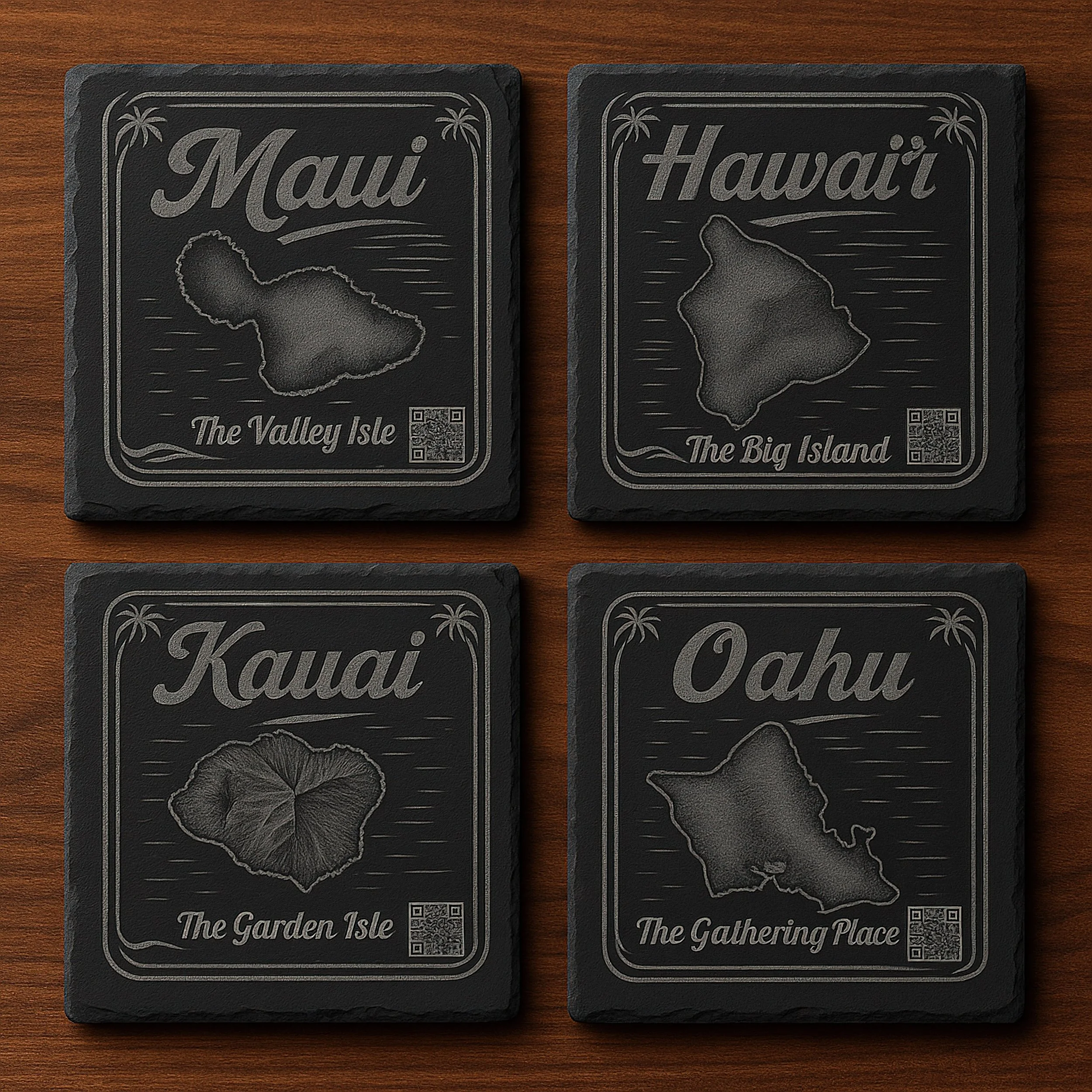 Lava Coasts, captures the spirit of Hawai‘i in engraved slate coasters. Each design reflects the islands’ natural beauty and culture, paired with QR codes that connect to immersive digital experiences. Lava Coasts offers a way to bring home the feeling of the islands—lasting keepsakes that share the aloha spirit far beyond Hawai‘i’s shores.