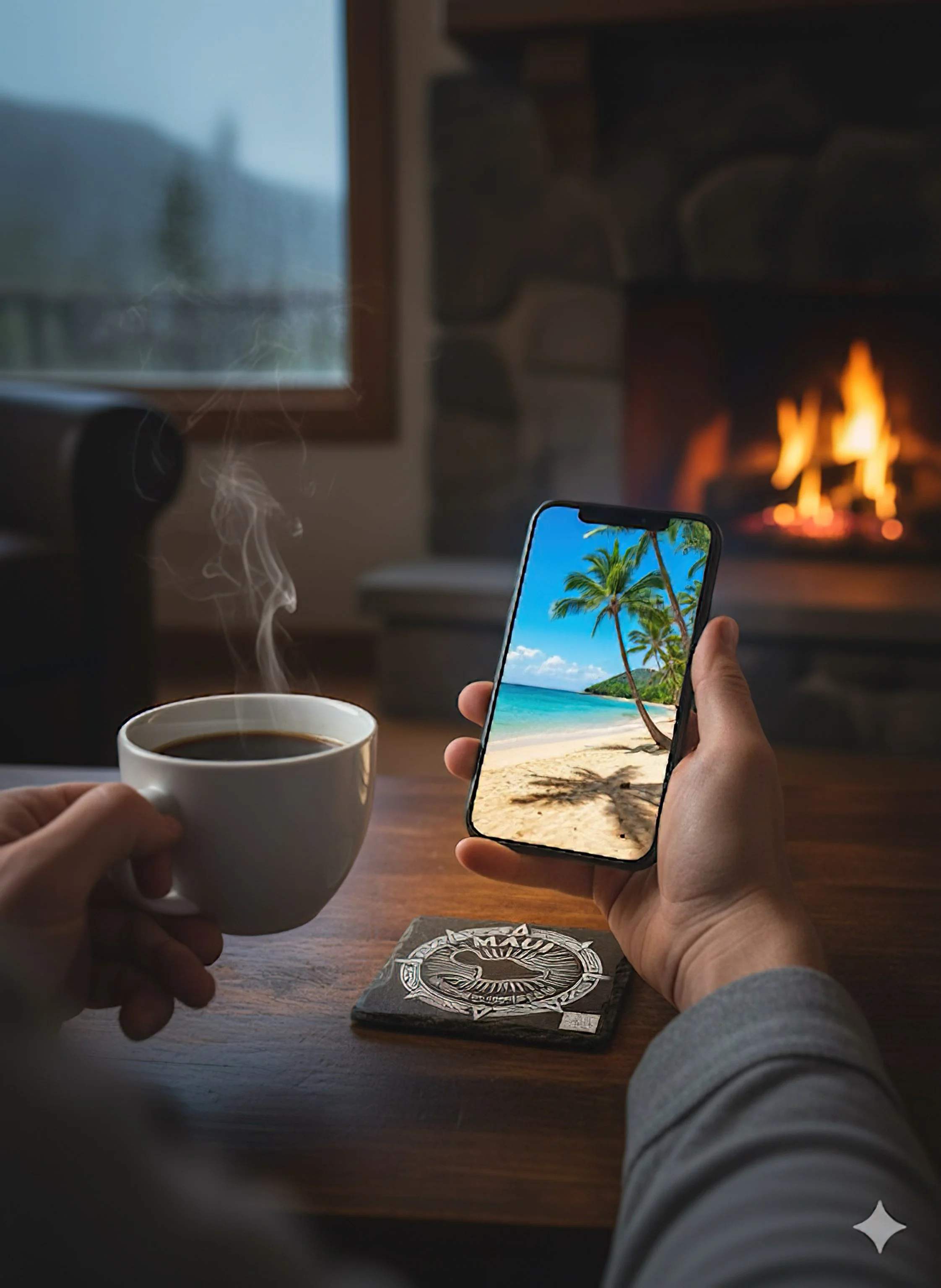 Perfect for reliving your trip — or sharing it. Give one to a friend, and you’re not just handing them a coaster… you’re gifting them a Hawaiian escape. From our islands to your hale — always keep a little paradise close.
